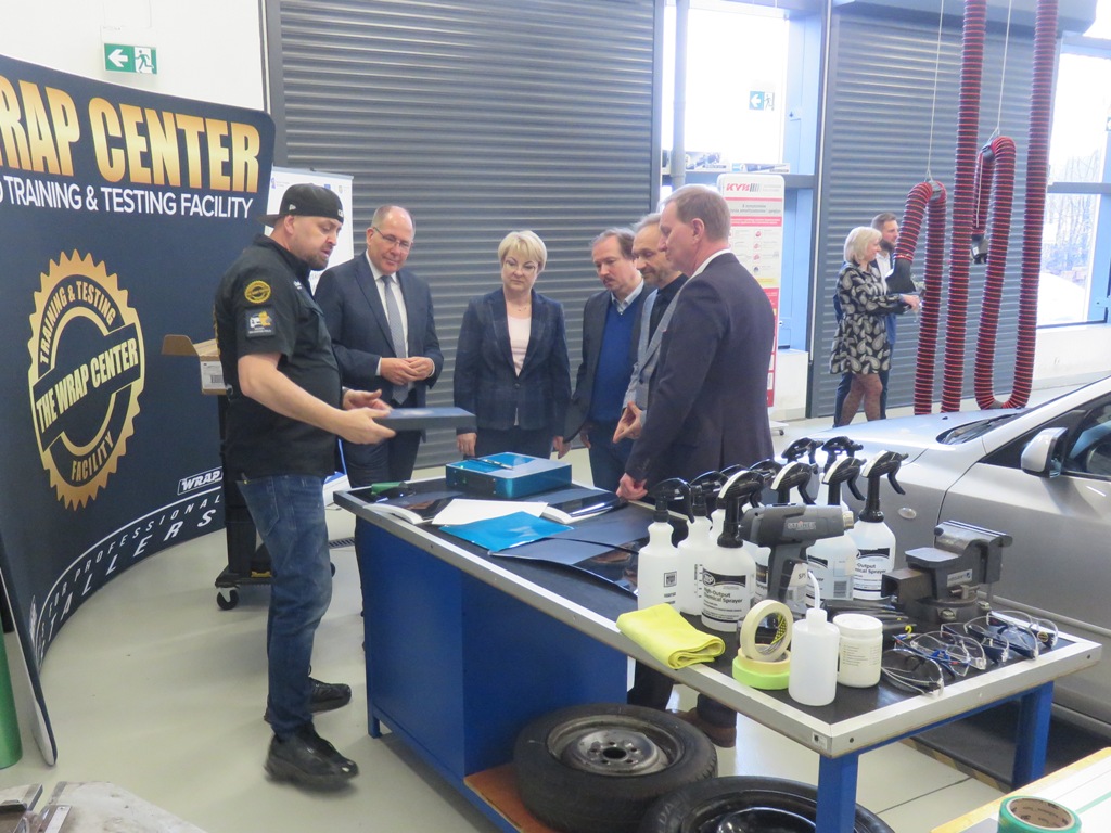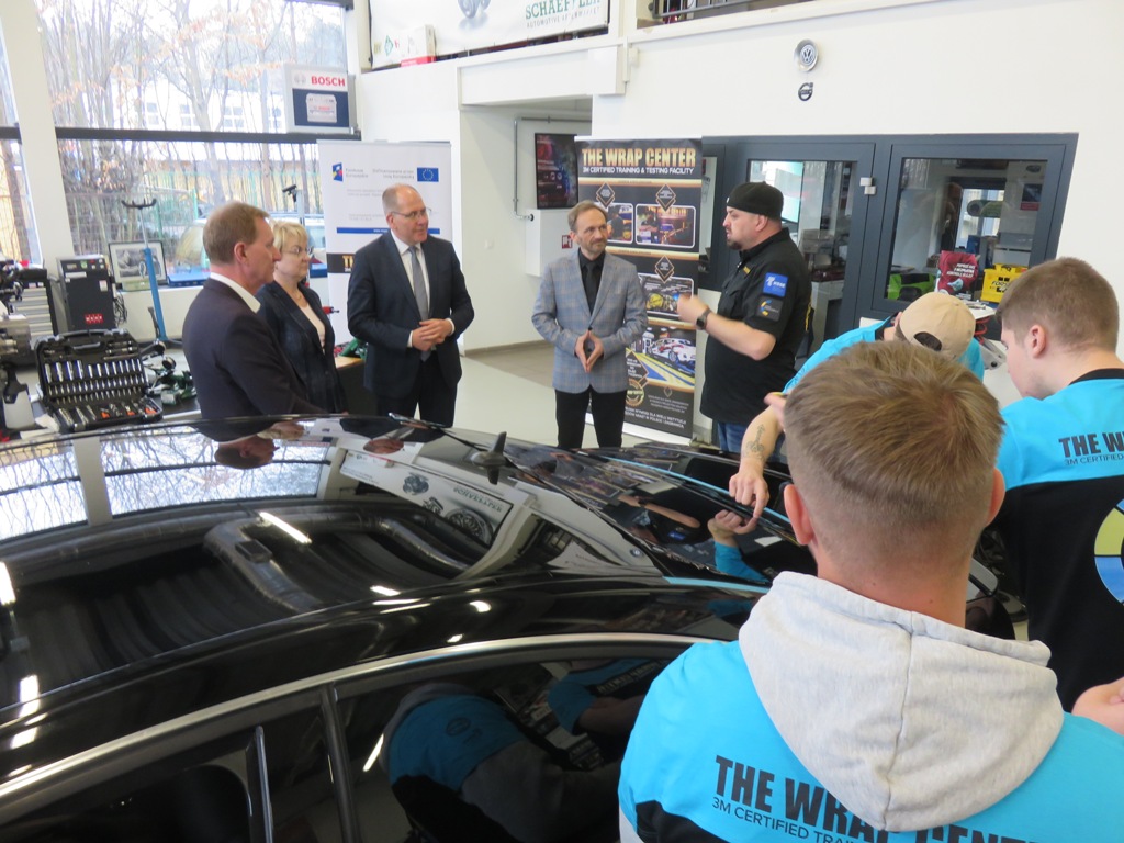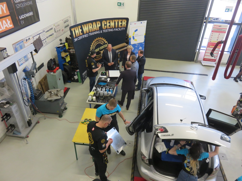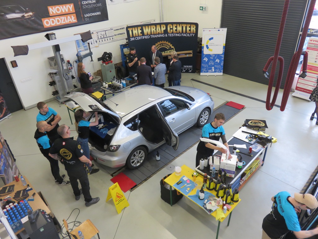 Uroczystość zaszczycił swoją obecnością przedstawiciel Wydziału Edukacji Urzędu Miejskiego w Jaworznie – pan Tomasz Dudek. W trakcie spotkania nasi goście mieli możliwość obserwowania kursu wrappingu odbywającego się w hali mechaniki i elektromechaniki samochodowej CKZ, przeprowadzanego dla uczniów kształconych w zawodzie technik pojazdów samochodowych przez Certyfikowane Centrum Szkoleniowo – Egzaminacyjne THE WRAP CENTER. Kurs ten jest elementem projektu „Śląskie. Zawodowcy 2” którego kluczowym partnerem jest Katowicka Specjalna Strefa Ekonomiczna S.A. Celem projektu jest zwiększenie atrakcyjności kształcenia zawodowego w regionie poprzez lepsze dopasowanie oferty edukacji zawodowej do zmieniających się warunków rynku pracy, w tym umacnianie jego pozytywnego wizerunku oraz tworzenie trwałych mechanizmów współpracy pomiędzy szkołami prowadzącymi kształcenie zawodowe a pracodawcami.